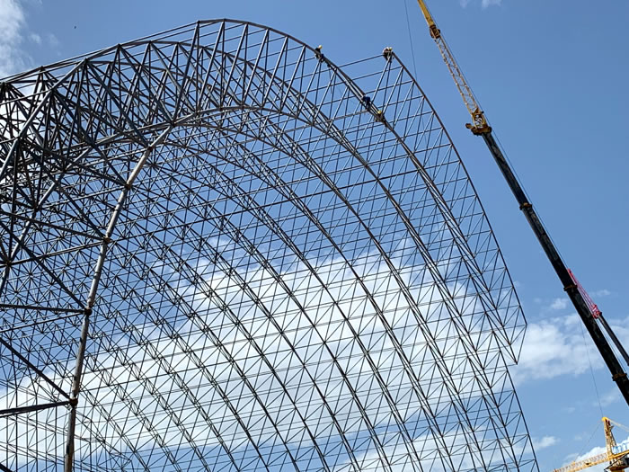 (2)网架加工前应对现场尺寸进行复测,确认无误后方可进行加工、安装;网架制作、运输、安装应遵守《空间网格结构技术规程》JGJ7-2010、《钢网架临沂螺栓球节点》JG/T 10-2009、《钢网架临沂螺栓球节点用高强度螺栓》 GB/T 16939-2016、《临沂钢结构临沂工程临沂施工规范》 GB50755-2012、《临沂钢结构临沂工程施工质量验收标准》 GB50205-2020。